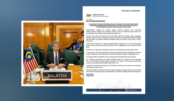 "Menteri itu turut menggesa Negara Anggota OIC supaya tidak terperangkap dengan cubaan pihak-pihak tertentu yang dilihat cuba menggagalkan proses rundingan damai di Gaza.