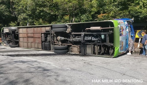 Dalam nahas jalan raya kira-kira pukul 11 pagi itu,dua lelaki warga China maut manakala 19 penumpang lagi terselamat selepas bas persiaran dinaiki dipercayai terbabas dan melanggar tembok pembahagi jalan di KM 16.5 Jalan Turun Genting Highlands.