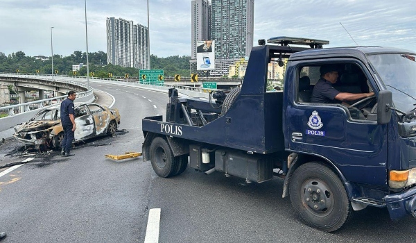 Kereta yang dinaiki dua lelaki terbabas dan terbakar 100 peratus di Lebuhraya Baru Pantai (NPE) menghala Pantai Dalam