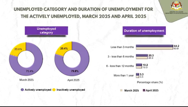 Menurut laporan Jabatan Perangkaan Malaysia (DOSM),79.6 peratus daripada jumlah itu merupakan penganggur aktif,atau mereka yang bersedia untuk bekerja dan aktif mencari pekerjaan.