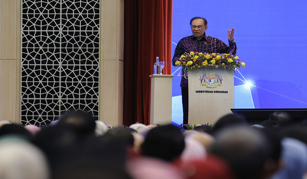 Perdana Menteri,Datuk Seri Anwar Ibrahim,berucap pada Majlis Perhimpunan Kementerian Kewangan bersama Perdana Menteri di Putrajaya/Foto BERNAMA